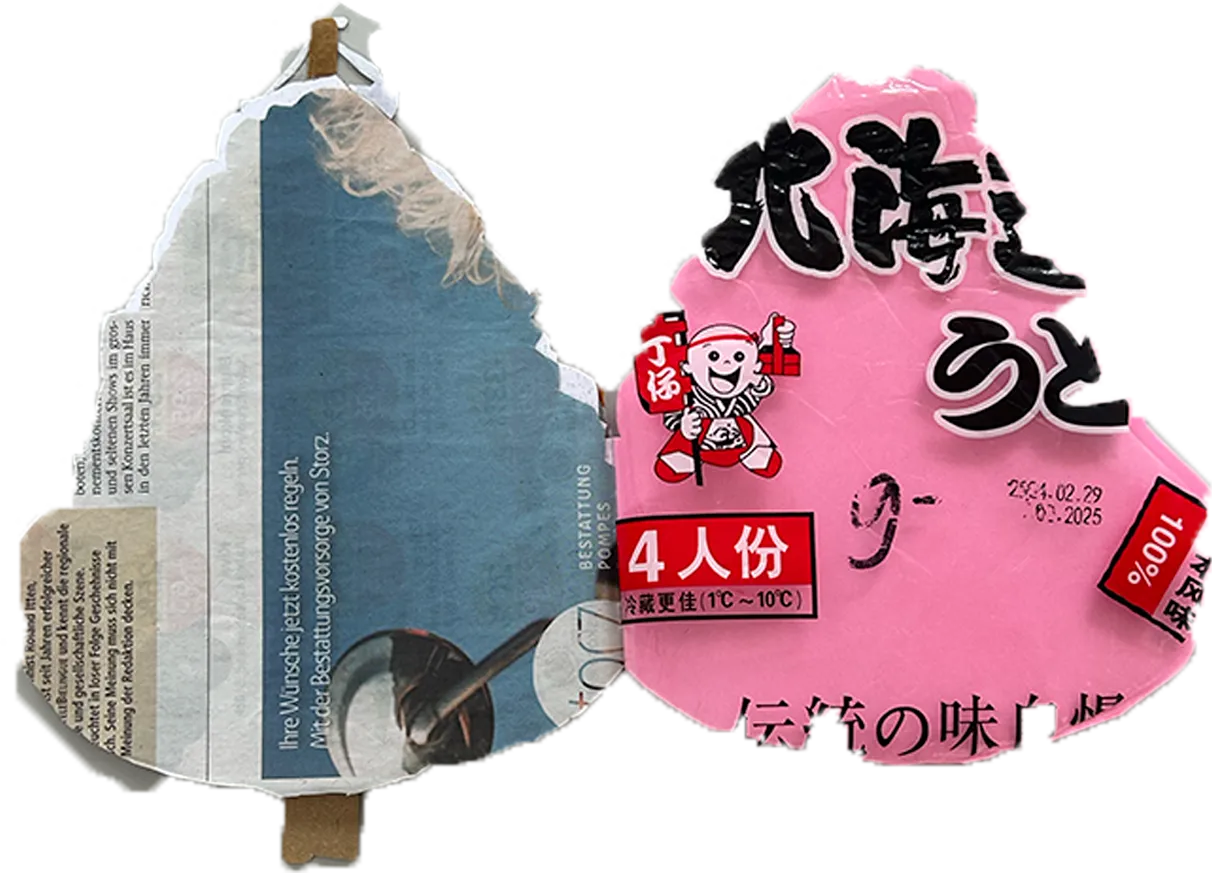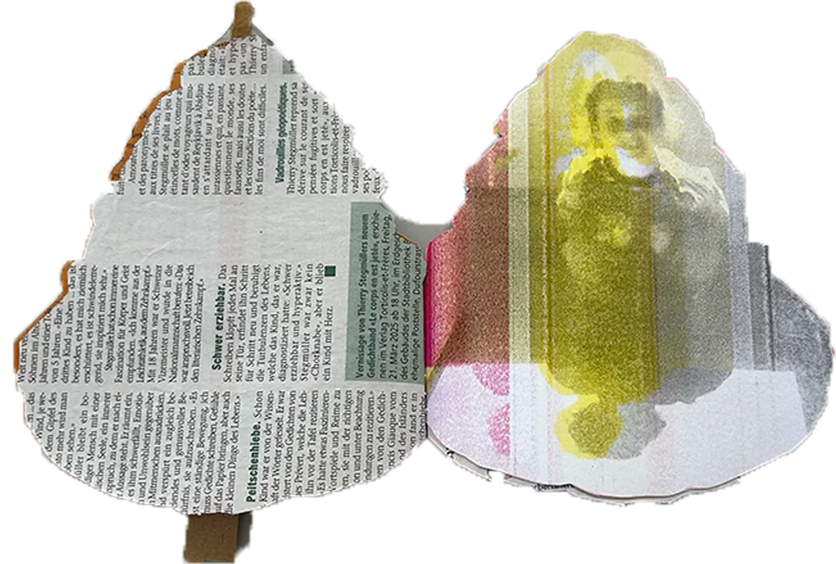 C’est des livres que je fais après avoir sélectionné une image pour la couverture dans un livre de recette trouvé dans une boîte à livre. Les pages sont faites à partir de flyer, d’impression raté, de page de magazine et autres. Ils ne sont pas utilisables pour écrire à l’intérieur c’est surtout pour l’objet. Pour les faire je suis mon instinct je ne me donne pas de règles particulière.